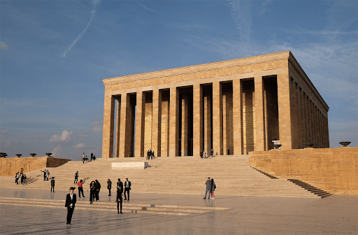 The streets around Anıtkabir, “Ordular ilk hedefiniz Akdeniz ileri!” carry names in advance. Rasattepe, where Anıtkabir was constructed, has an elevation of 907 meters and is an ancient Phrygian settlement. Atatürk’s tomb is made of a 40-ton monolithic red marble adorned with soil from various regions of Turkey beneath.